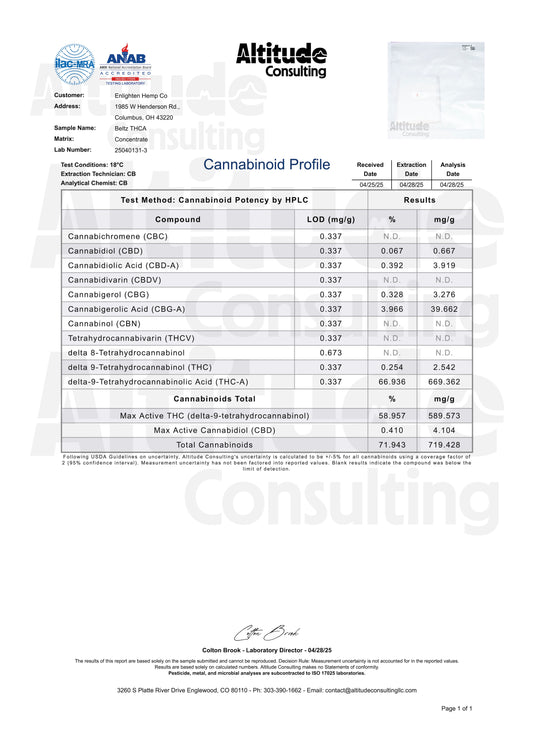 Sold outHigh THCA Hemp Live Rosin - Beltz