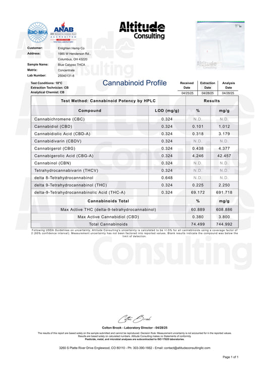 High THCA Hemp Live Rosin - Blue Calypso
