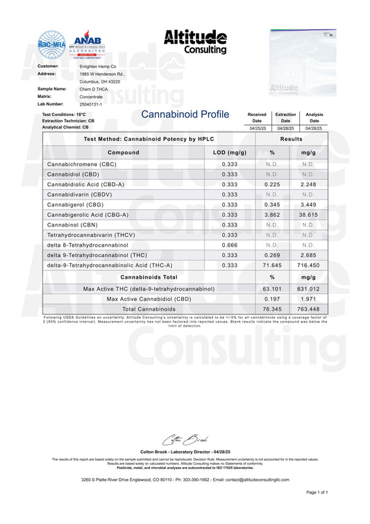 Sold outHigh THCA Hemp Live Rosin - Chem D